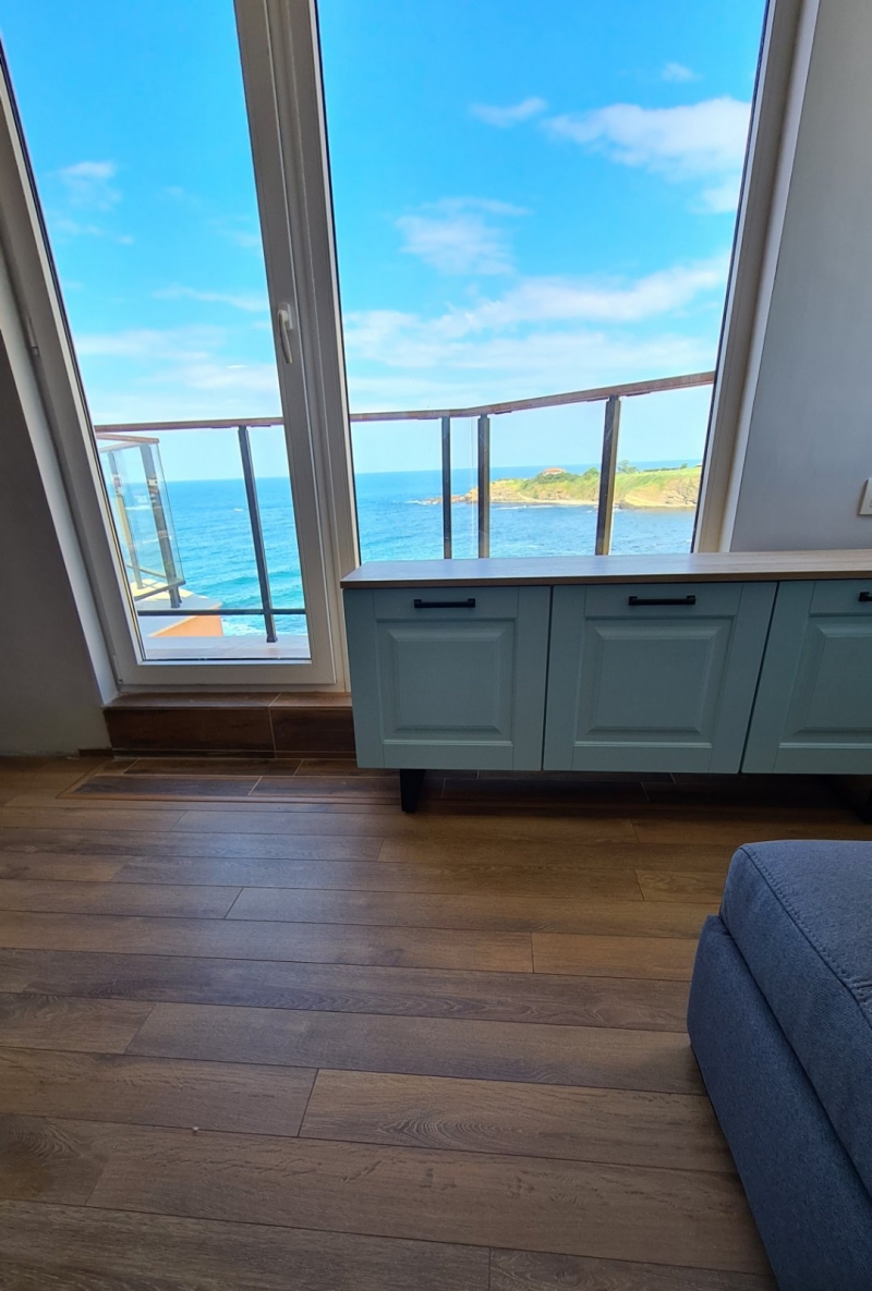 Сградата е разположена не просто върху скалите, а над водата с панорамна гледка към лазурния бряг в град Ахтопол.